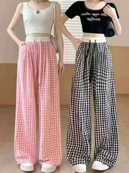下身阔腿长裤[太阳]多巴胺格子裤白腰全清9.8,2800件,均码,价格优势实体...