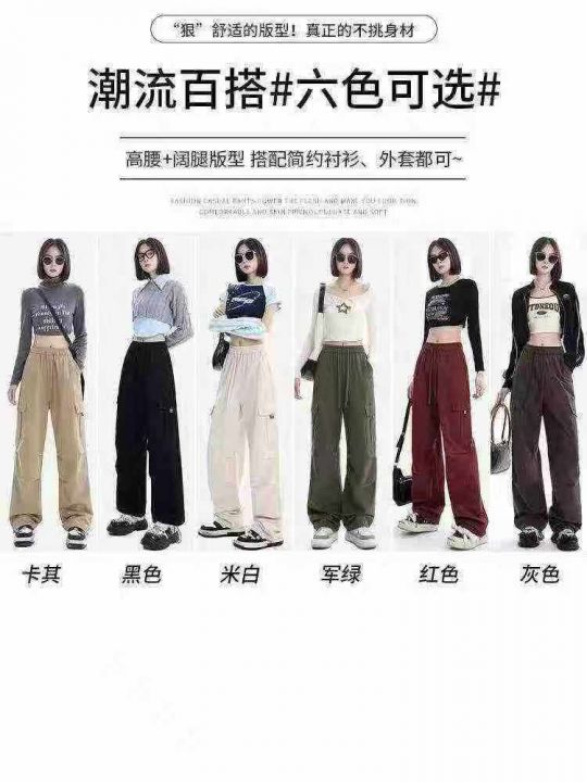 下身工装长裤[太阳]全清22.1,800件、均码春夏季抽绳松紧腰工装装高腰直筒...