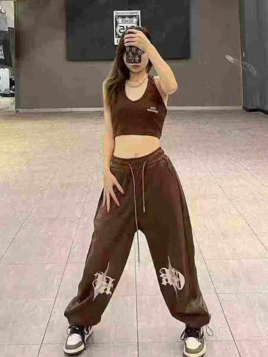 ☕️欧美hiphop街舞裤子咖色美式复古运动卫裤爵士舞vibe束脚休闲裤118条全...