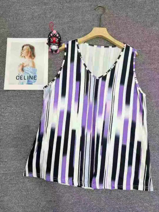 复古条纹背心吊带宽松显瘦V领宽松通勤夏季穿着舒适女士印花仙气,独立拉链...
