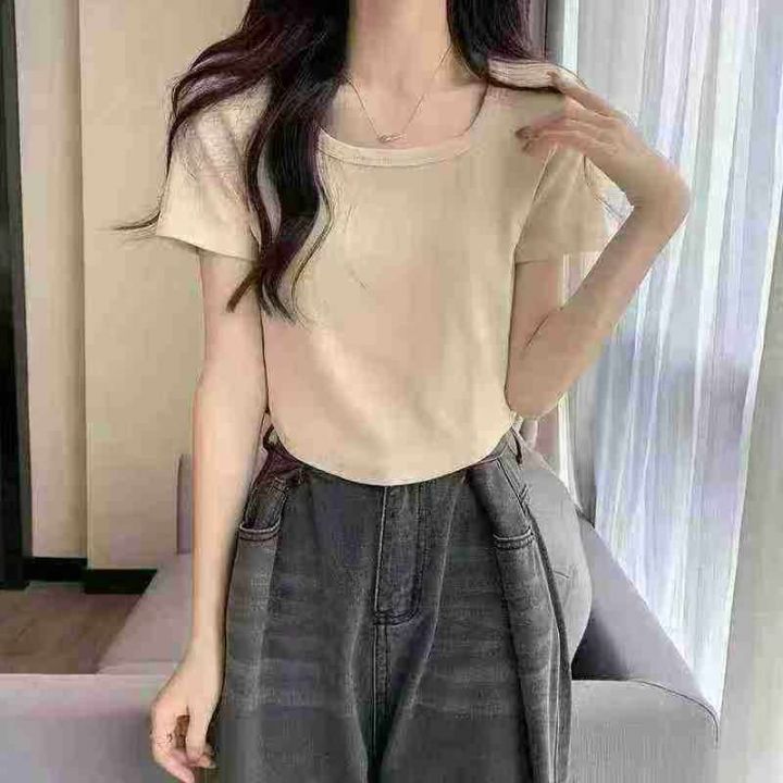亏本清4.8元天猫在售款700件左右高品质夏季薄款方领螺纹纯棉靓妹短袖T恤,...
