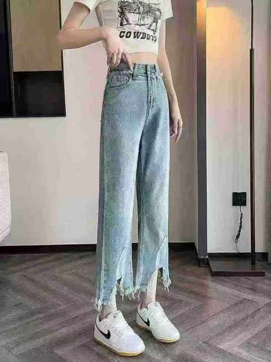 ☕️乞丐阔腿牛仔裤女秋季新款高腰宽松毛边直筒裤九分裤 270条全清9.9元,...