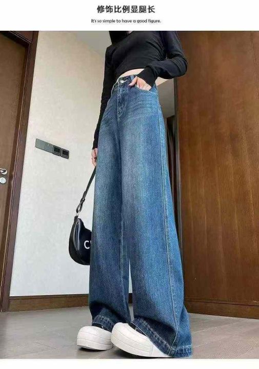 ☕️大码胖mm复古蓝阔腿牛仔裤女春秋季新款高腰宽松显瘦垂感直筒长裤拖地裤...