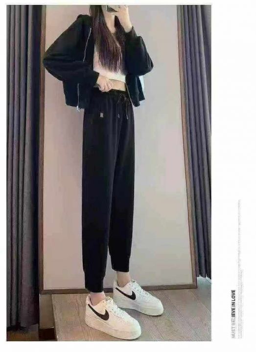300 件左右[红包]女装休闲加绒卫裤,整款两色,松紧腰抽绳,松紧束脚,独立...
