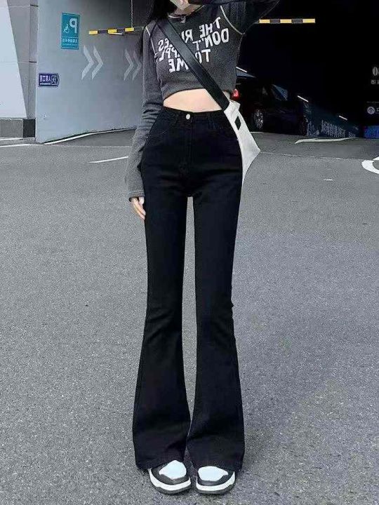 ☕️高弹力黑色微喇叭牛仔裤女显瘦显高弹力高腰拖地马蹄长裤240条全清13.8...