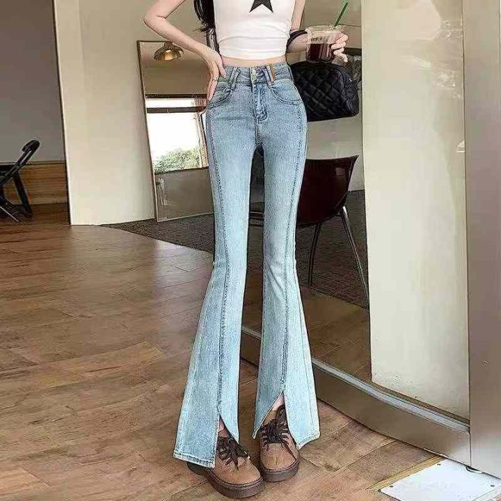 ☕️高弹力浅色开叉微喇叭牛仔裤女新款夏季高腰紧身显瘦裤子125条全清13.8...