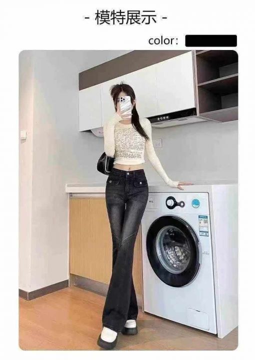 全清11.8分货+12028新款女士黑灰色弹力微喇叭牛仔裤,高腰显瘦修身阔腿马蹄...