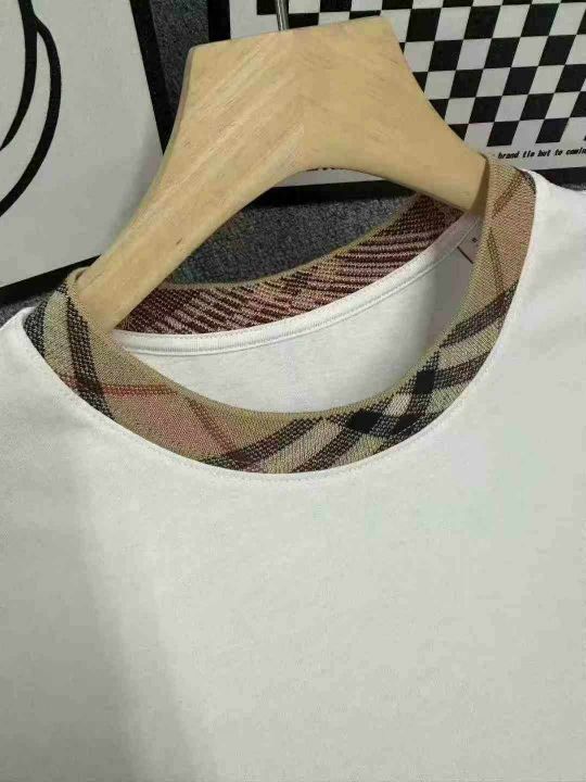 BURBERRY经典同款格纹装饰纯棉休闲简约圆领大版型T恤衫,单款三色,独立包...