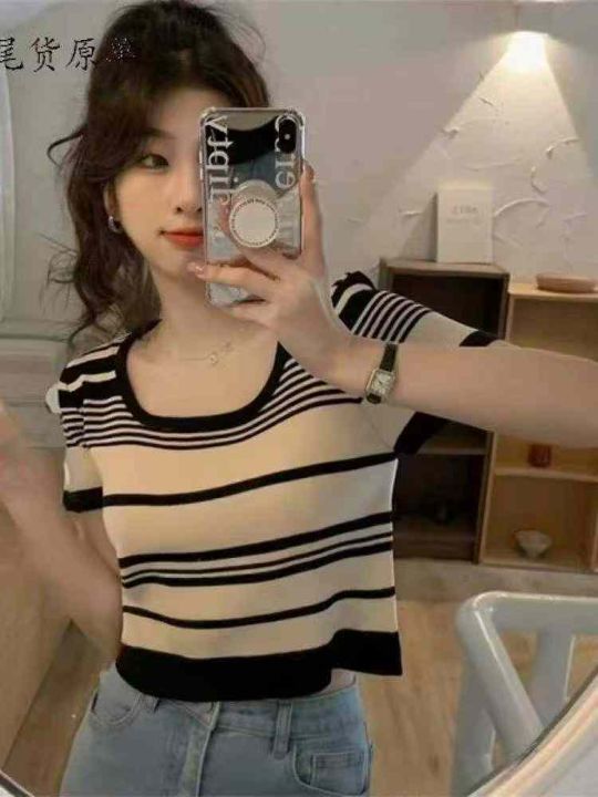 ️INSEE“轻职场”法式条纹针织T恤女25夏气质内搭高级感短袖爆款条纹针织薄...