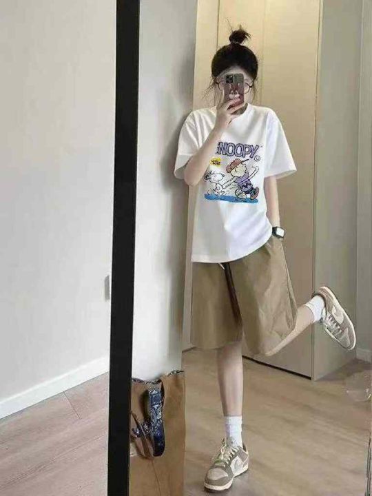 ️2025夏季新款纯棉短袖t恤女宽松百搭设计感小众卡通印花上衣快鱼品牌尾货...