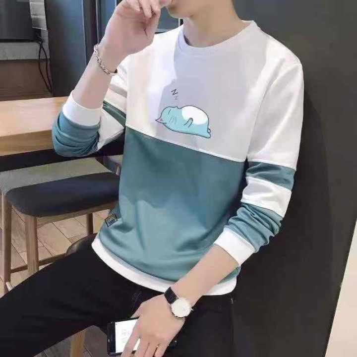 ️2025胖猫撞色拼接圆领国风新款男士卫衣韩版潮流宽松春秋季长袖卡通上衣暴...
