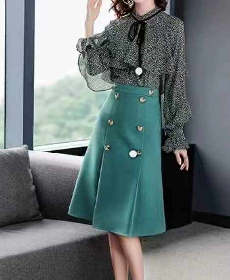 品牌原单秋冬复古通勤百搭碎花衬衣拼接毛衣连衣裙,独立包装带吊牌,均码面...