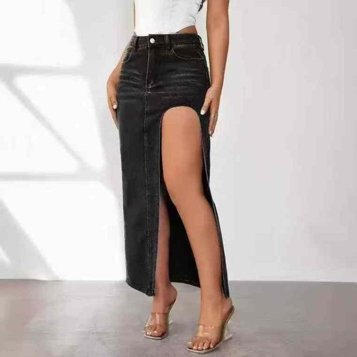 夏季新款女装开叉大长款洗水棉牛仔半身长裙,独立包装,码数XS- L码,214件...