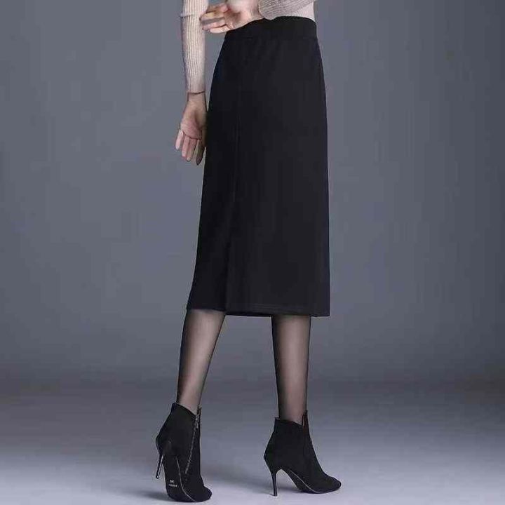 秋冬新款女装a字高腰显瘦松紧腰中长款包臀半身裙,独立包装,码数M、L码,2...