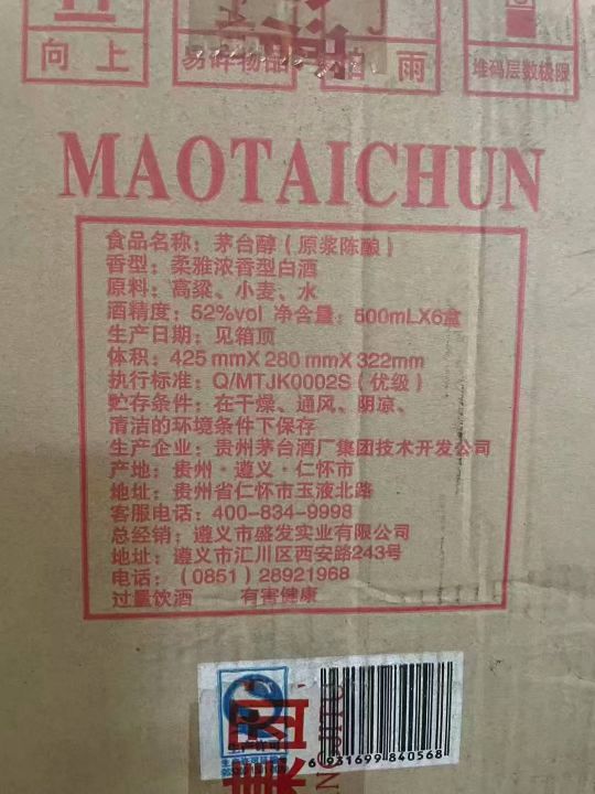 好几百块钱一箱,茅台醇陈酿原浆15年,52度,一箱6瓶,还有100箱左右...