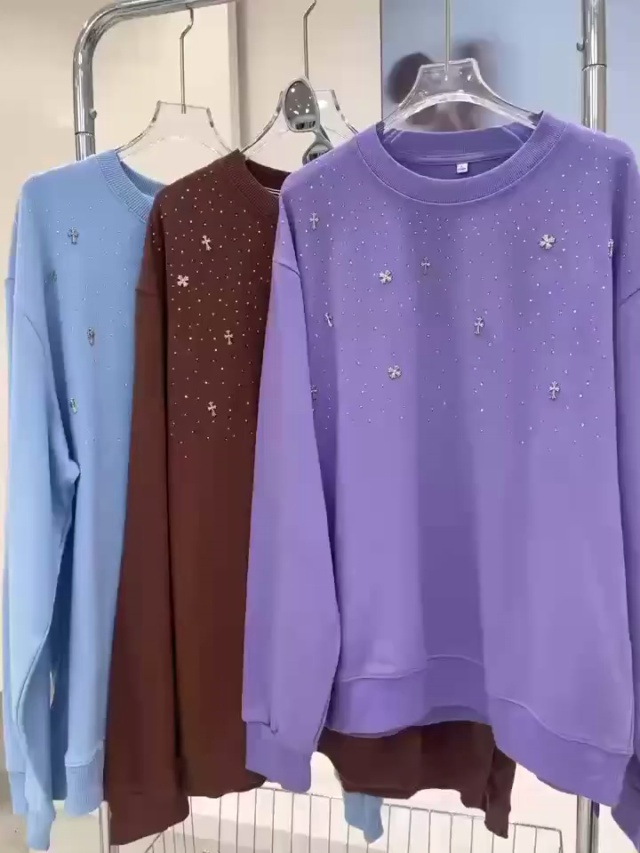 550件左右重工镶钻长袖女装修身加绒打底衫长袖内搭亮钻黑色t恤百搭潮,面料...