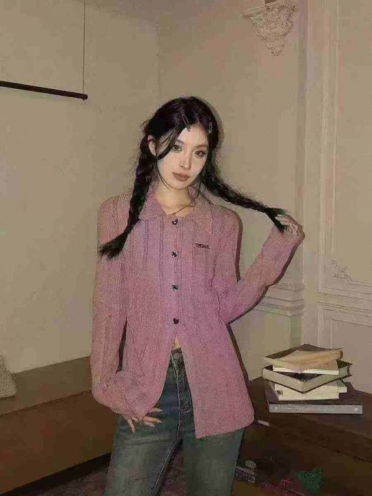 [發]女长袖针织上衣40件左右修身辣妹设计感polo领上衣 独立包装 捡漏价...