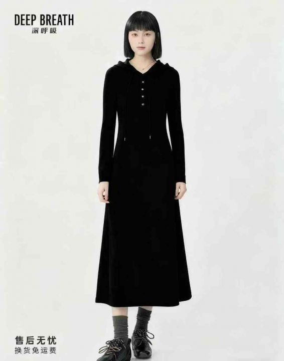 新款法式连帽连衣裙气质修身长袖长裙,高弹力,领口包边,有份量手感柔糯,...