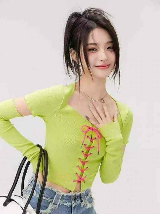 春夏季新款辣妹性感绑带设计感独特别致针织小衫,独立包装,均码面料柔软舒...