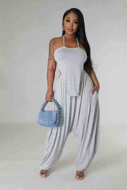 6.8清欧美洋气性感露背绑带上衣,长裤两件套,整款三色,数量:256套,码数...