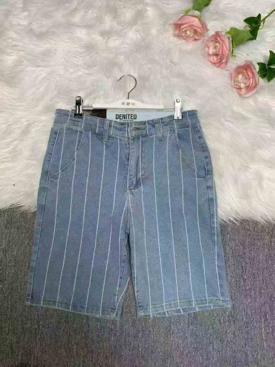 弹力条纹短裤男生外穿夏季薄款休闲中裤网红潮流百搭五分牛仔裤300件,图片...