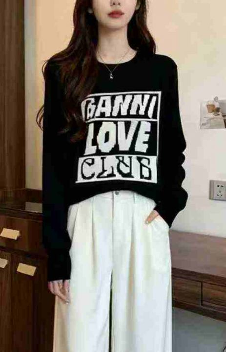 秋季新品字母提花圆领泡泡袖套头毛衣,独立包装,均码面料柔软舒适弹力大,...