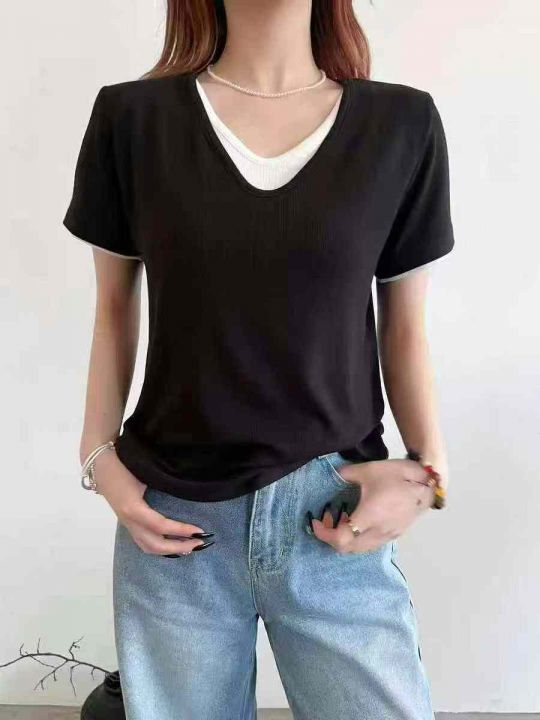 2000件女装春夏季2025年新款短袖T恤衫女士减龄百搭宽松设计感小众别致上衣 ...