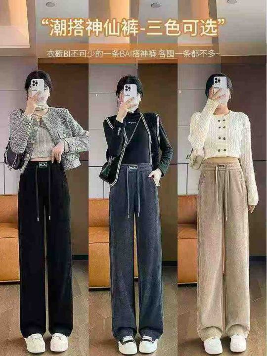 灯芯绒裤子女秋冬季阔腿女裤加绒加厚窄版女士雪尼尔休闲直筒裤女,数量655...