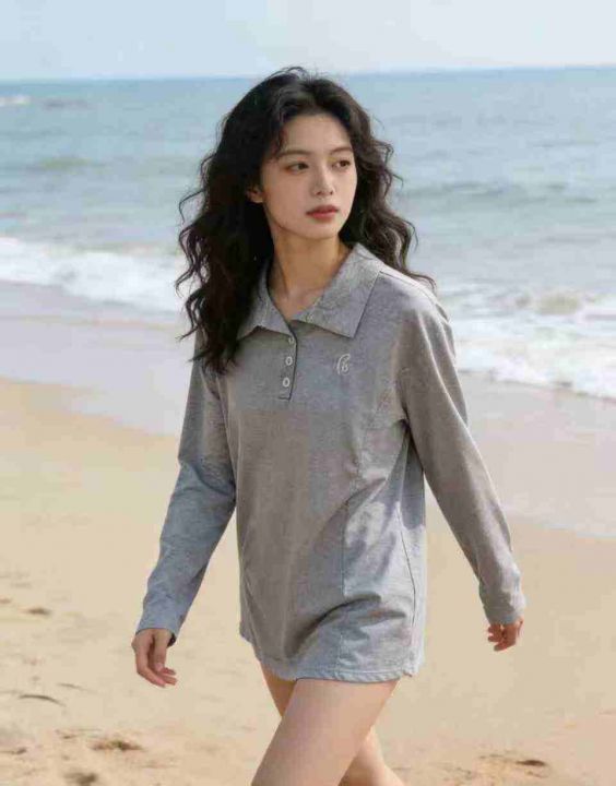 春秋新款洋气减龄百搭翻领POLO上衣简约设计感纯色长袖t恤衫,数量1740件,...