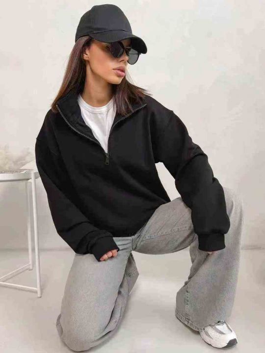 900件男女同款立领半拉链加绒卫衣秋季新款个性痞帅宽松上衣潮,面料柔软保...