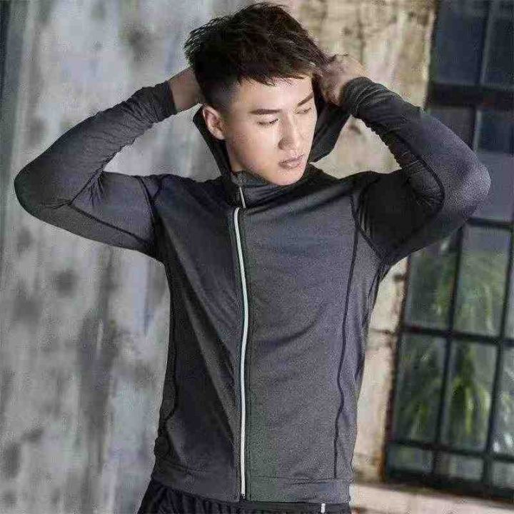 全清6.5分货+1男士拉链连帽开衫健身服装长袖速干高弹力跑步篮球训练服,独...