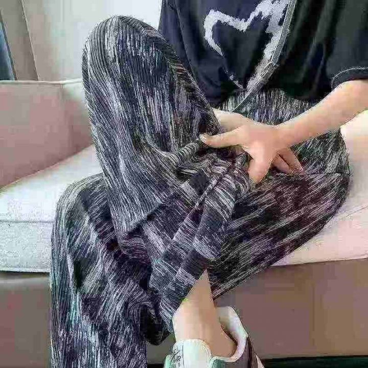 全清价6.9元冰凉感直筒冰丝阔腿裤女夏季薄款休闲防蚊显瘦垂感扎染裤子,独...