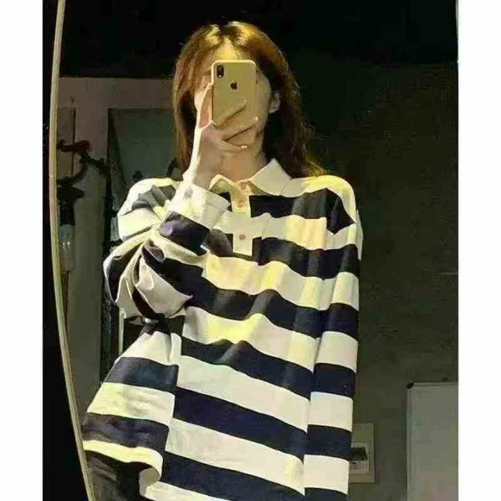 春秋薄款撞色条纹polo领棉质T恤潮牌小众设计感宽松别致,数量928件,码数M-...