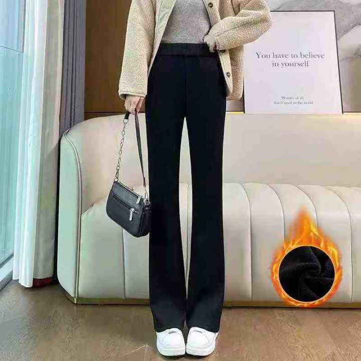 天猫精选150条,黑色喇叭裤女秋冬加绒爆款加厚羊绒直筒休闲微喇女装西裤,...