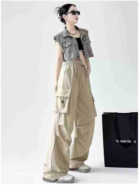 美式工装裤女春秋季新款高腰宽松显瘦百搭阔腿休闲裤,2个款,图片色,图9款...