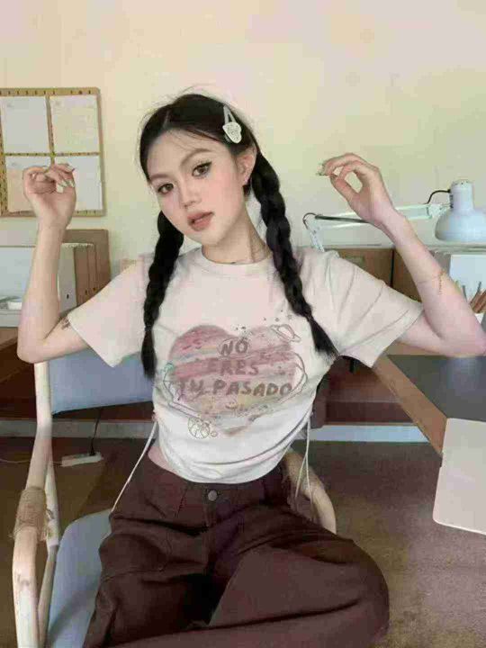 10.9清广州十三行档口货3000件夏季网红爆款纯棉辣妹抽绳短t,可穿90-130斤...