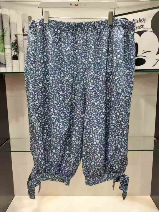 夏新款印花木耳边抽绳灯笼裤复古宽松飘逸薄休闲裤,独立包装,L-4XL,118件...