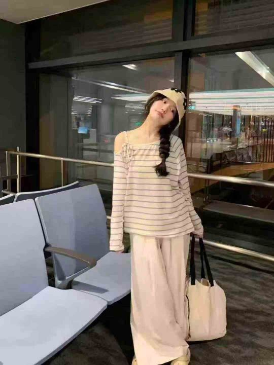 [月亮]:5.5清295件[月亮]:韩系慵懒宽松休闲辣妹系列罩衫上衣[月亮]:条纹...