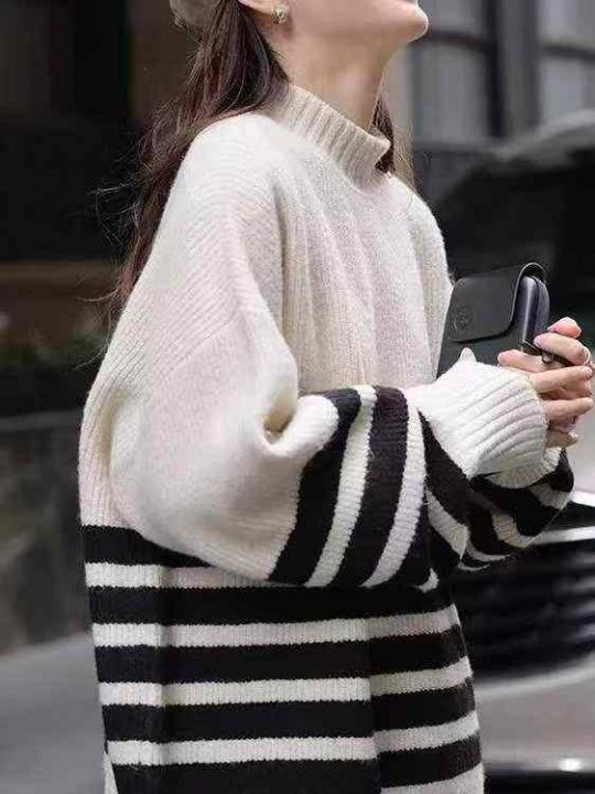 捡漏款,秋冬新款宽松慵懒风韩系撞色条纹北极绒套头毛衣,独立包装,码数S-...