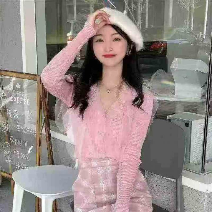 拼接网纱针织衫开衫修身显瘦网红靓妹毛衣打底小外套,独立包装,五个颜色,...