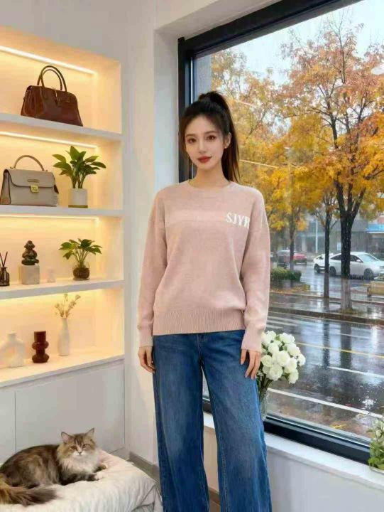 秋冬新款毛衣宽松慵懒女针织打底衫长袖百搭洋气时尚圆领针织上衣,独立包装...