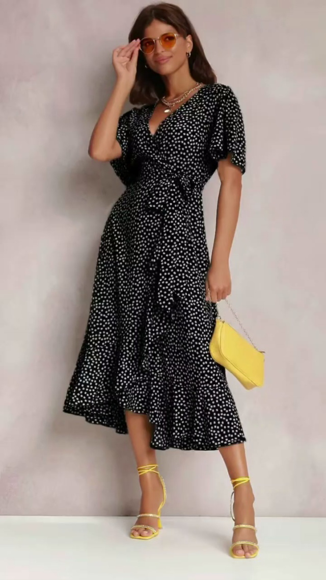 [爆竹][爆竹]3.9清700件欧美时尚休闲V领印花荷叶边袖口短袖,整款,花型图...
