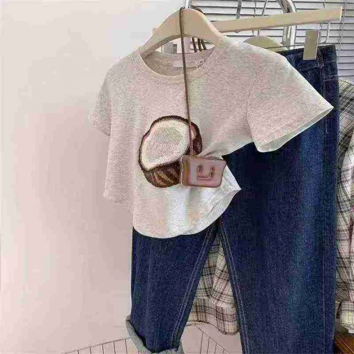 5.9清电商仓回收204件韩系时尚椰子贴布纯棉辣妹短袖T恤,码数S-XL。面料柔...