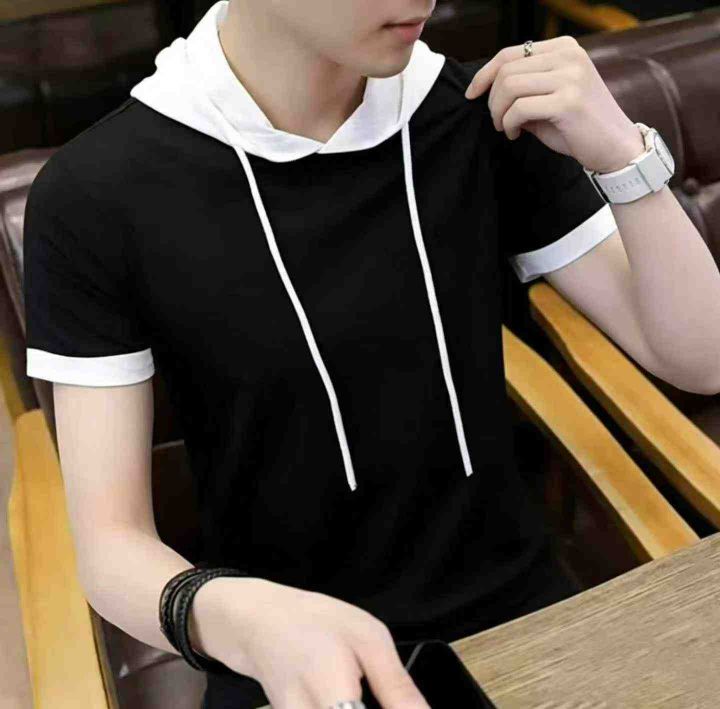 3.9清电商仓回收92件学院风青少年男生百搭连帽短袖T恤,码数S-2XL。版型款...