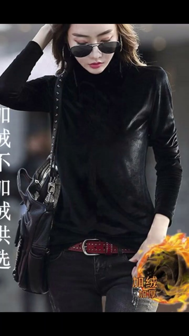 6.5清2325件高领防风金丝绒打底衫内里BB绒 半高领棉秋冬加绒加厚保暖洋气T...