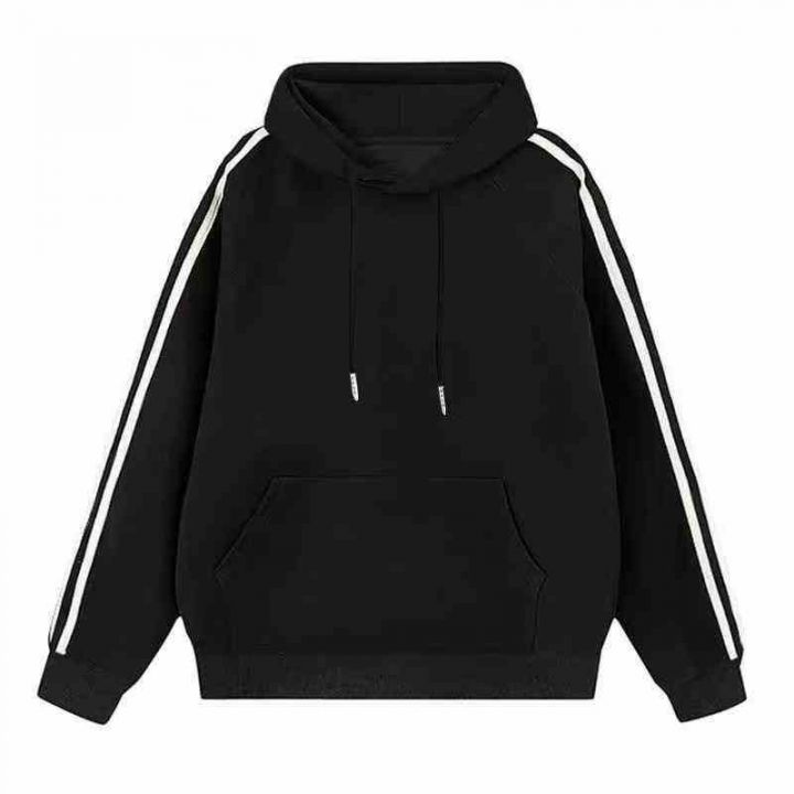 6.8清319件 美式复古三条杠加绒连帽卫衣男女秋冬季情侣撞色休闲帽衫外套 码...