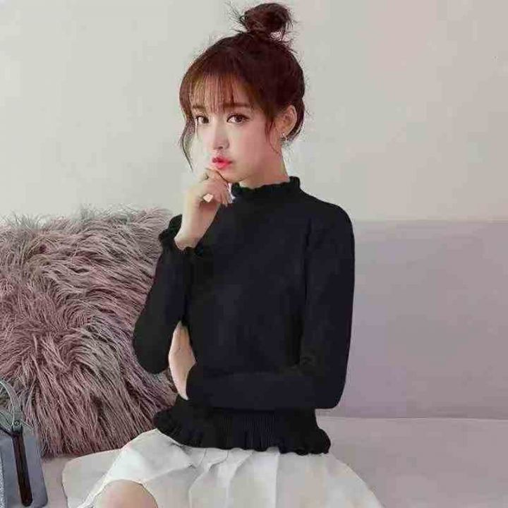包芯纱收腰木耳边打底毛衣长袖半高领2025年秋冬内搭修身针织毛衫,独立包装...