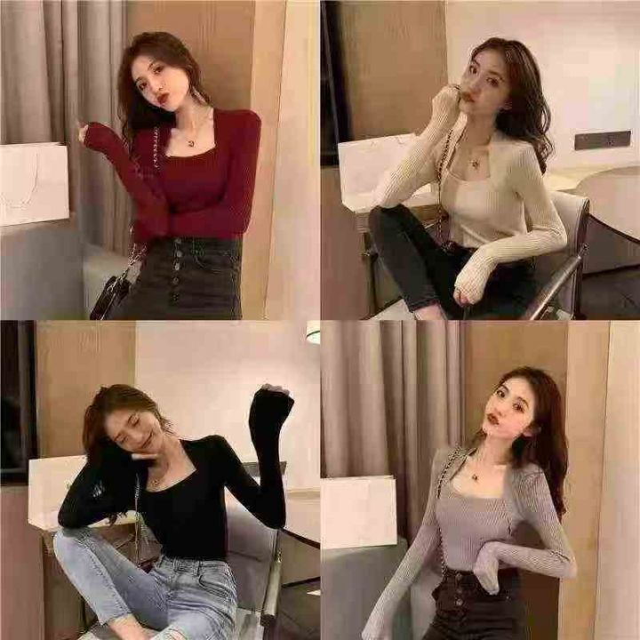 包芯纱超火的毛衣方领打底衫内搭冬季紧身显瘦洋气百搭针织衫,独立包装,均...