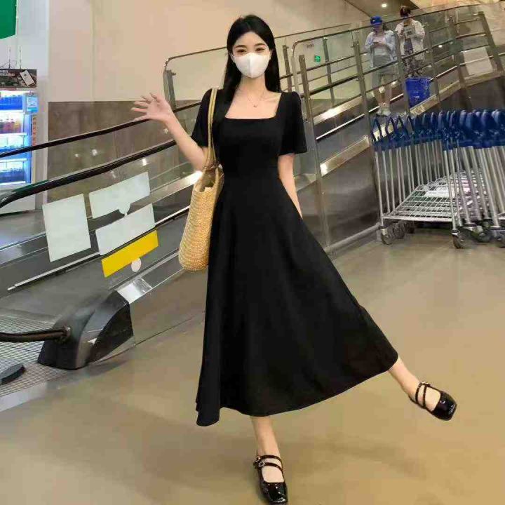 新款法式收腰气质方领高级感赫本风长裙子,单款单色,品质好,有独立包装,...