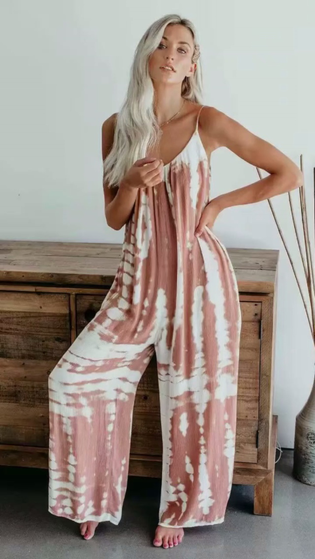 [爆竹][爆竹]5.5清1500左右件亚马逊欧美印花无袖宽松休闲吊带连体裤阔腿裤...